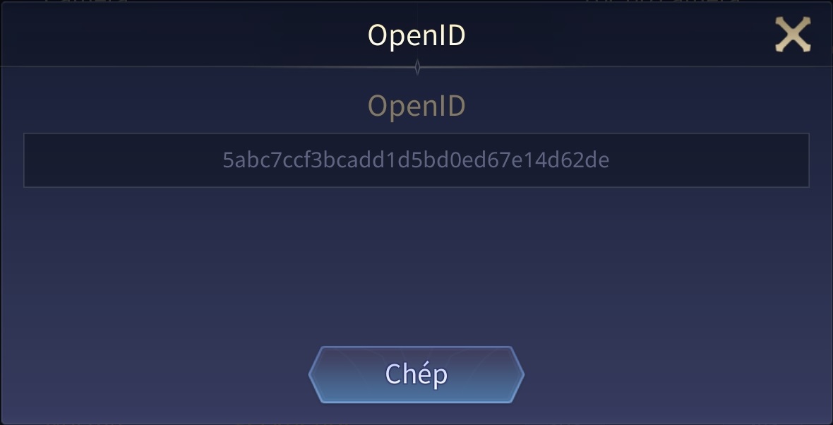 Bước 3: Ấn vào OpenID, dãy chữ số OpenID của bạn sẽ hiện ra, chọn Chép để lưu ngay vào máy <== Quay lại trang nạp lậu Quân huy - Liên quân mobile |